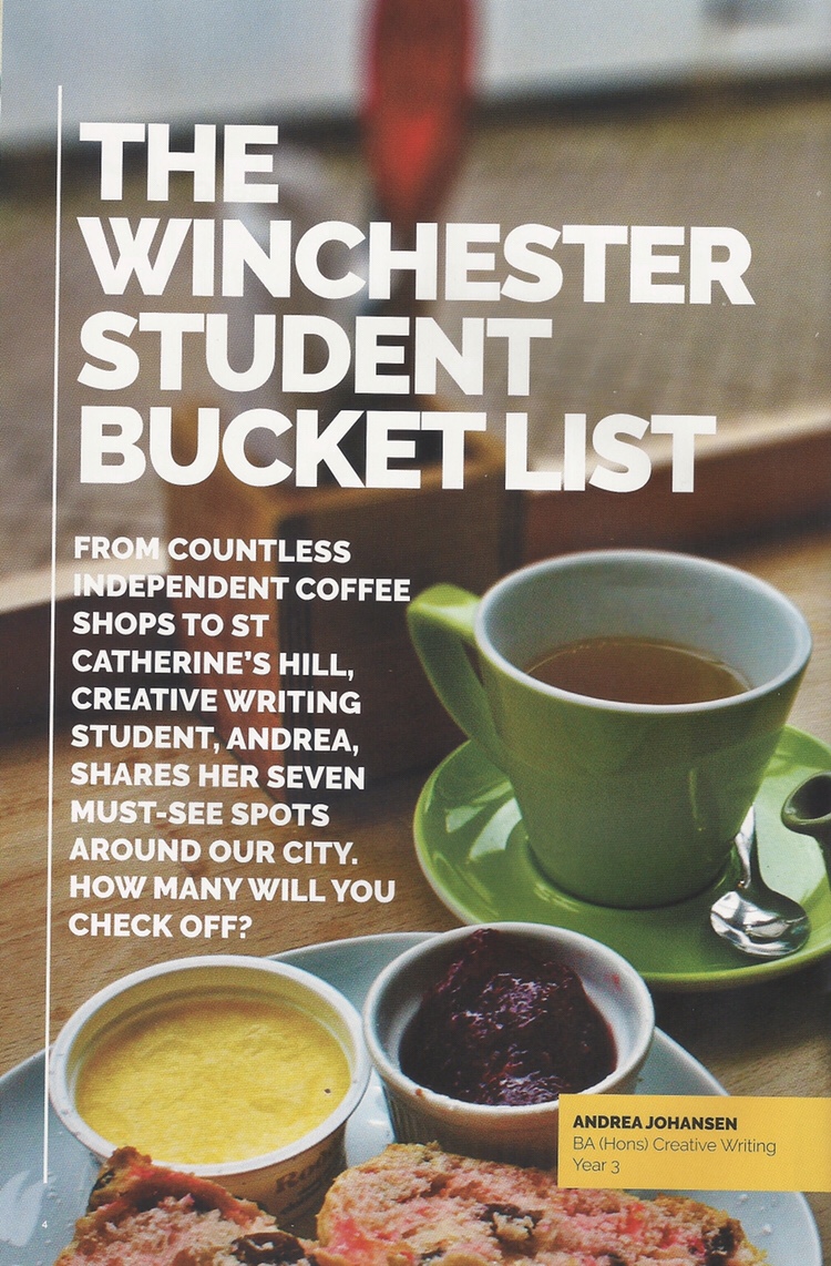 My article is called “The Winchester Bucket List”, is featured on the front page, and I’m listed on the contents page as a “student contributor”, which I’m really happy and a little bit proud about!