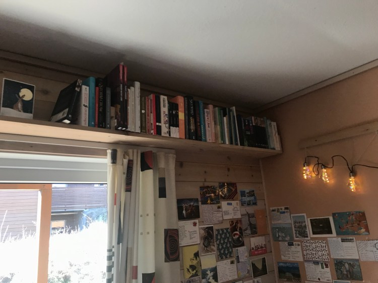 I love the feeling a good bookshelf leaves on a room. All the backs of the books shroud the room in this instant feeling of comfort and reminds you to take a deep breath. Or, at least, that’s how bookshelves make me feel. If you want to have a lil nosy around my “home-bookshelf” you can click here. However, you don’t have to have a huge big bookshelf to let the books make your living space feel cosy; you just need your favourites. Moving out or moving to a new place is inevitable gonna leave you feeling a little bit small and a little bit lonely at some point, and having the familiar words of your favourite books to hide in for a little while is always a great comfort, that adds to a temporary home’s homeliness.