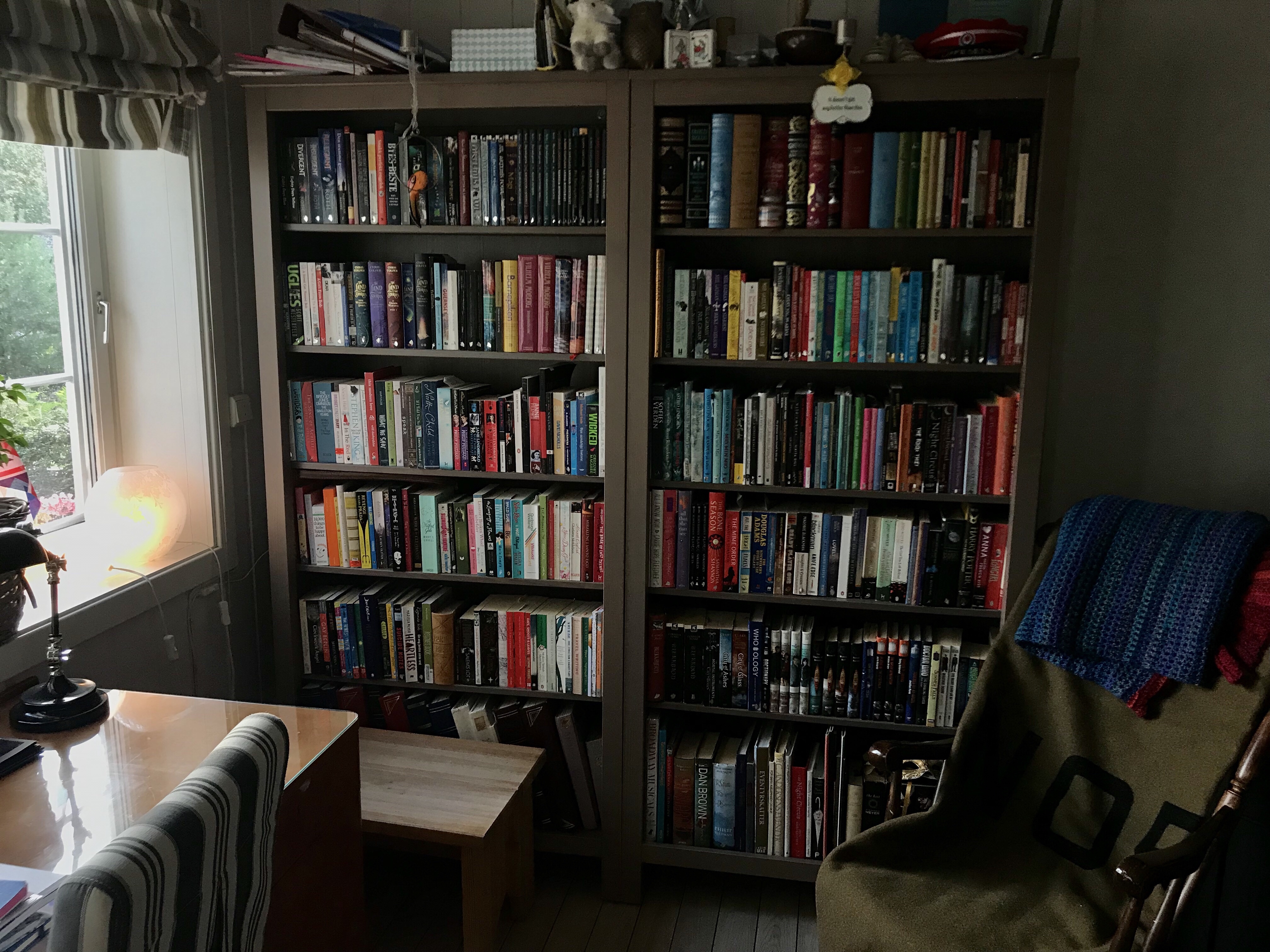 I’ve got two proper book cases and then four shelves in two other cases. Not the best solution but it works. In our old house I used to have these really beautiful “floating” bookshelves lining the top of the walls, framing the bed room. Here the ceiling is too low for that, and I’m just happy I’ve got enough space for all of the books.